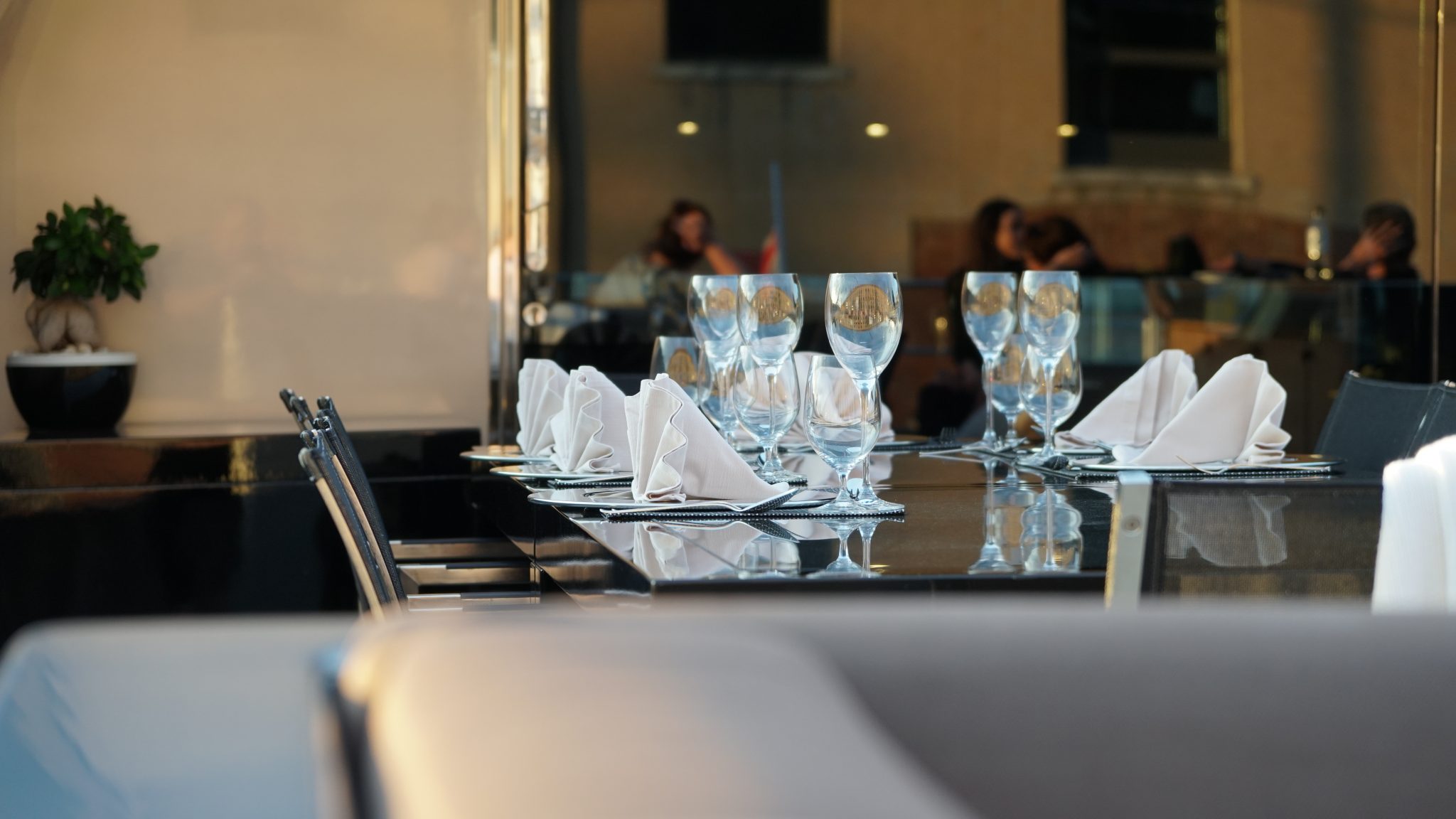 The minimalist decoration is the result of a careful selection of furniture, underlined by a conscious study of the artificial illumination based on the use of light lines in the ceilings and the use of indirect light throughout. The walnut wood predominates throughout the yacht with two finishes, a clearer one for the floor and a more classic one for the furniture and bulkheads combined with lacquered objects and leather. This decoration extends throughout the yacht, including the guests and crew cabins.