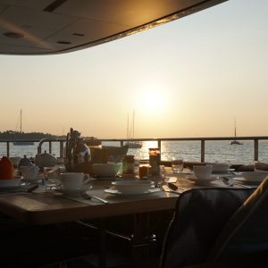 4A's timeless styling and spacious interior offers accommodation for up to 10 guests in 5 cabins consisting of 3 double and 2 twin cabins, each with en-suite facilities. The master cabin is situated on the main deck and features private balconies, gym and office. All cabins are individually air conditioned.